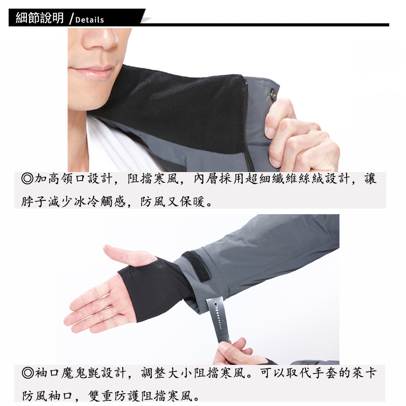 | 專業設計,完美版型,卓越機能性布料,細緻車縫工藝,造就出符合亞洲人頂級防水透濕保暖外套。 |